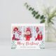 Envíe a su familia y amigos una postal fotográfica personalizada multi3 esta temporada de vacaciones que adorarán. El diseño presenta tres fotos lado a lado enmarcadas en blanco y acentuadas por hojas botánicas acuarelas y en verde salado. Debajo de las fotos se lee Feliz Navidad en una tipografía de escritura roja moderna y sus nombres abajo a personalizar en verde. La parte posterior de la tarjeta tiene un mensaje y una firma para el personalizar. Diseñado por la artista ©Susan Coffey.