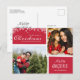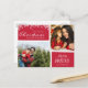 Navidades fotográficos familiares amigables con presupuesto y diseño de postales de vacaciones con dos de sus fotos familiares. La tarjeta roja con copos de nieve blancos dice - Que el milagro de los Navidades llene tu corazón de amor y alegría. Personalizar agregando sus dos fotos y su nombre. Añade la dirección de retorno y el mensaje adicional al reverso.