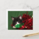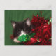 El gatito de esmoquin blanco y negro cree que está escondido detrás de la guirnalda mientras espera y observa a Santa Claus lindos amantes de los gatos Navidades postal de vacaciones