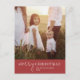 Este moderno año de fotos de Navidades rojos de moda en revisión postal de vacaciones es el elegante y perfecto saludo de vacaciones. Este sencillo diseño de boho presenta caligrafía clásica sofisticada en tonos rojos y blancos tradicionales. Personaliza tu postal con una foto, tu apellido, nombres y año. Incluir un año opcional en revisión o boletín familiar en la parte posterior.