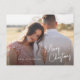 Modern Merry Christmas Script Simple Photo Holiday Postcard cuenta con letras de dibujos modernos a mano con foto en la parte delantera. Haga clic en el botón personalizar/editar para personalizar este diseño con sus fotos y detalles.