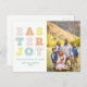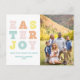 Una moderna tarjeta de vacaciones de Pascua con "Alegría de Pascua" en letras pastel con problemas, junto con tu retrato familiar favorito.