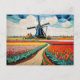 Postal Festiva Molino de viento histórico en el floreciente campo