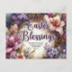 Postal Festiva Morado acuarela Floral Pascua Bendición cristiana