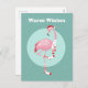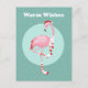 Flamingo rosa lindo y gracioso en calcetines bufanda y sombrero Santa color rosa y menta colores pastel diseño