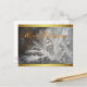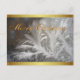 Un elegante saludo de Navidades con un mensaje dorado de Feliz Navidad contra una escena de Navidades blancos.