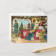 Obra de arte de época. Madre e hijos comprando en la tienda general. Árbol de Navidad en la ventana