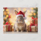 Navidades conejo conejo conejo conejo sentado con un sombrero de Santa. Postal de Navidad