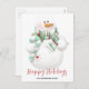 Una moderna y bonita postal de snowman Happy Holidays que puede ser personalizada con tu propio nombre y detalles para convertirla en la tuya propia.