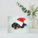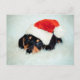Postal de los Navidades de Cachorros de Dachshund. Adorable cachorro dachshund con sombrero de santa.