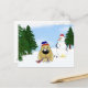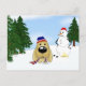 El exclusivo diseño de invierno de Cocker Spaniel maravilloso. Cocker con un poco de nieve en su nariz. Un hombre de nieve irritado mira. Para evitar el frío que el Cocker Spaniel tiene sobre una bufanda y gorra que son los colores de su país.