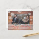 Maravillosa tarjeta de Navidades de fotografía familiar personalizado moderna. La nieve falsa de plata. Fondo rústico de madera marrón. Texto: 'Felices Fiestas' en caligrafía roja moderna. Creado con una sonrisa de iolantesdesign :-)!