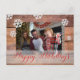 Maravillosa tarjeta de Navidades de fotografía familiar personalizado moderna. Falsos copos de nieve blancos plateados. Fondo rústico de madera marrón. Texto: 'Felices Fiestas' en caligrafía roja moderna. Creado con una sonrisa de iolantesdesign :-)!