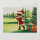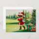 Postal Festiva Navidades de golf temáticos para una mujer gata Go