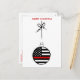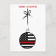 Envíe saludos navideños de Feliz a amigos y familia con esta tarjeta única de Navidades de bomberos de la línea roja delgada - Ornamento de Navidad en un diseño de bandera estadounidense en colores de bandera de bomberos, diseño moderno de rojo negro y blanco . Personaliza con el nombre de la familia, y los nombres de los miembros de la familia, o elimina para escribir a mano. Esta tarjeta de Navidades para bomberos es perfecta para familias de bomberos o tarjetas de navidades del departamento de bomberos. DERECHOS RESERVADOS © 2020 Judy Burrows, Black Dog Art - Todos los derechos reservados. Postales de feriado de bombero de Navidades de la línea roja delgada