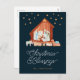 Una postal de festividad religiosa con un ilustracion acuarela de la natividad y el titular editable "Bendiciones de Navidades" con letra de escritura blanca. Personaliza tu nombre en amarillo en la parte delantera.