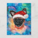 Los Navidades del Griffon Breed Dog de Bruselas presentan una acuarela de un Griffon de Bruselas con un Gorra de Santa, un collar de Navidades rojos y una acuarela de galaxia.