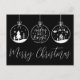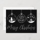 Personalizable Elegante Moderno, Sencillo, Sencillo, Ornamentos De Negocios En Blanco Y Negro Navidades Navidades De vacaciones Tarjeta Postales. Una tarjeta de Navidad perfecta para que las empresas la envíen. Cuenta con 3 adornos, uno con "Merry and Bright" en el centro. Añade tu logotipo para que sea el tuyo. Una postal divertida y simple para marcas corporativas, pequeñas empresas o individuos como maquilladores, esteticistas, peluqueros y mucho más! En este momento es de color blanco y negro, pero puedes cambiar los colores a lo que quieras. Incluso se pueden cambiar los adornos. Mezcla de tipografía moderna y de escritura para un aspecto profesional pero moda. Disponible como tarjeta impresa o como tarjeta digital descargable que puede enviar por correo electrónico o imprimir localmente.
