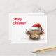 Envíe saludos de Navidad a amigos y familiares en esta postal con una linda vaca Highland con un sombrero de santa. O puede personalizar el texto en el frente con su propio mensaje.
