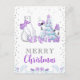 Cute Watercolor Morado y Azul Amigos del invierno Polar Oso y Pingüinos navidades diseño con árboles de navidad y bordes de confeti plateado
