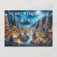 Postal Festiva Navidades de pintura de escenas nevadas de la alde