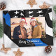 Envíe Feliz Navidad a amigos y familia con esta tarjeta única de Navidades de la policía de la Línea Azul delgada - Bandera estadounidense con los colores de la bandera de la policía, negro y azul moderno. Personaliza con tu foto y nombre de familia favoritos. DERECHOS RESERVADOS © 2020 Judy Burrows, Black Dog Art - Todos los derechos reservados. Navidades de policía, tarjeta postal de festividad de bandera estadounidense delgada de la línea azul