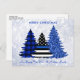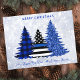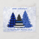 Envíe enseres de Feliz Navidad a amigos y familiares con esta tarjeta única de Navidades de la policía - Línea Azul delgada, purpurinas de manta negra y azul en un diseño de fondo de purpurina de nieve plateado. Personalizar con el apellido. Esta tarjeta de Navidades de policía es perfecta para familias de policías o tarjetas de navidades del departamento de policía. DERECHOS RESERVADOS © 2022 Judy Burrows, Black Dog Art - Todos los derechos reservados. Navidades de policía Purpurina delgado de la línea azul colocó postal feriado de árbol