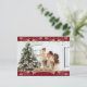 Elegante postal de Navidades de fotografía rojos con hongos de oro y bayas. Personaliza fácilmente esta postal de los Navidades cristianos con tu foto, el nombre de la familia y el mensaje personal. Navidades rojos y dorados bendice postal de vacaciones.