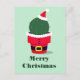 Una alegre postal navideña con un cactus vestido de Santa sobre un fondo verde claro. Navidades de Santa Cactus Holiday Postcard Diseño de vacaciones | ©Melissa Patton - Artista/Ilustrador