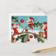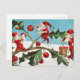 Postal Festiva Navidades de Santa Elves pintando bayas en hojas