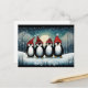 Este elegante diseño de vacaciones para Navidades incluye cuatro lindos pingüinos con sombrero de Santa en una noche de invierno nevada.
