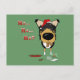 Collie suave tratando de salirse con la suya comiendo todas las galletas de Santa. Smooth Collie está usando un Sombrero de Santa, con un hombre de pan jengibre en la boca. La leyenda dice: "Ho... Ho... ¿¿¿¿Cómo????".