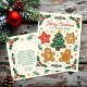 ¡Celebra la temporada con una postal tan dulce como una galleta de pan de jengibre! Este encantador diseño cuenta con un árbol de Navidad, dos personas de pan de jengibre y galletas de dos estrellas, todas decoradas con escasas heladas y rodeadas de una ráfaga de copos de nieve festivos. Las bayas y las hojas enmarcan la carta, añadiendo un toque clásico de alegría navideña. La parte trasera incluye un mensaje cálido y de personalizable, que facilita el envío de un saludo personal. Tanto el texto frontal como el posterior son totalmente editables, lo que le permite diseñar el mensaje perfecto para todos sus amigos y familia.