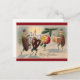 Una fantasiosa (aunque extraña) tarjeta de Navidades de la era victoriana con dos hombres de pinecone bailando con un pretzel y una manzana.