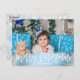 Modernas postales de felicitación personalizada y elegante. Añade tu foto (imagen) y mensaje en la parte posterior. MERRY CHRISTMAS en letras de escritura de caligrafía blanca moderna y trazo de pincel metálico de Relieve metalizado falso azul. Vacaciones perfectas / Navidades / postal Hanukkah para enviar a tu familia y amigos.