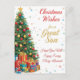 Envía amor de feriados sentidos con esta carta brillante y festiva que incluye el sentimiento: "Los Navidades desean un hijo grande. Espero Que Disfruten De Cada Momento". El diseño incluye un exuberante árbol de Navidad completamente decorado, lleno de regalos coloridos y una estrella de topper dorada, ambientado con un fondo de confeti y estrellas brillantes. Este diseño es perfecto para enviar saludos cálidos, tradicionales y amorosos a su hijo esta temporada de vacaciones.