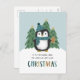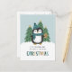 Esta divertida y humorística postal de Navidades presenta un pingüino dibujado a mano, con un gorra y una bufanda de azul verde azulado. Está parado frente a algunos árboles de Navidad y sosteniendo una galleta de pan de jengibre. El texto de Play on Words dice: "Es el pingüino parecerse mucho a los Navidades". La nieve que cae en el fondo sobre un cielo azul claro le da un aire cálido e invernal. Agregue el nombre de su familia en la parte delantera o déjelo tal como está - la parte posterior contiene plantillas de texto para una mayor personalización.
