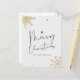 Esta hermosa tarjeta navideña Navidad presenta un elegante diseño en blanco y negro, adornada con estrellas doradas y brillantes copos de nieve. La elegante caligrafía de "Feliz Navidad" añade un toque moderno y sofisticado, perfecto para enviar cálidos deseos de vacaciones. Ya sea que estés celebrando con la familia o enviando saludos desde lejos, esta postal es una manera impresionante de difundir la alegría de la temporada.