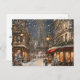 Envíe un pedazo de destello de vacaciones parisinas con la tarjeta postal "Glittering Eiffel Tower Lane". Este diseño cuenta con una encantadora calle parisina con la Torre Eiffel encendida de luces festivas, rodeada de alegría navideña.