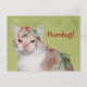 El gato crema y blanco de Wirehair americano, cuyo pelo solamente está parcialmente cableado, parece un gatito norteamericano de Shorthair con un confetti de vacaciones en él y un aspecto irritado gruñón dice humorísmo (fácilmente cambiado o removido) amantes del gato Navidades postal