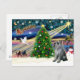 Navidades Magia con un Schnauzer gigante. La estrella de Belén ilumina el camino para tres hombres sabios mientras que Santa y sus renos vuelan por la noche. Una paloma y un muñeco de nieve se suman a los símbolos de la temporada de los Navidades.
