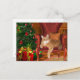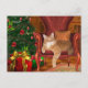 Salones de gatitos de naranja tabby con pelo largo en una silla junto al árbol de Navidad y regalos con la habitual actitud de gato de "esto se trata de mí" los amantes del gato postales de vacaciones