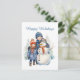Postal Festiva Navidades niños snowman añaden acuarela de texto H