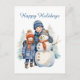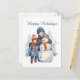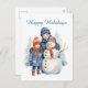 Navidades niños snowman añaden texto acuarela Holiday Postcard