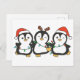 Postal Festiva Navidades pingüinos animales adornan pingüinos