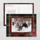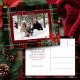 Su saludo de vacaciones destacará con este cálido y rústico diseño con un fondo de color rojo rubí, verde y blanco, un texto editable de los saludos de la temporada, una plantilla de fotos única con borde rojo y puntiaguiedra de esquina y adornos de pino.