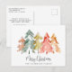 Postal Festiva Navidades Rústicos Pine Trees acuarela