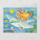 Esta tarjeta postal de vacaciones presenta una linda imagen retro de un conejo conejito entregando sus regalos montando en la parte trasera de un búho blanco grande. El conejito lleva un saco en la espalda lleno de zanahorias y lechuga. Las imágenes se colocan sobre un fondo azul intenso salpicado de estrellas doradas. La parte trasera de la tarjeta tiene mucho espacio para el mensaje de su personalizado. Para ver más imágenes de Navidades antiguos y contemporáneos en una variedad de productos, visite la sección de Navidades de nuestra tienda.