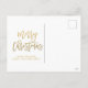 Guión con letras a mano con las palabras "Feliz Navidad" en un fondo dorado con bayas rojas. Feliz Navidad Gold 3 Collage de fotos Diseño de tarjetas de vacaciones de Elke Clarke © Inside of card tiene un guión de tipografía de oro sobre un fondo blanco con un diseño de acuarela de flores de vacaciones.