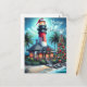 Postal Festiva Navidades tropicales caprichosos faro rojo Verde a